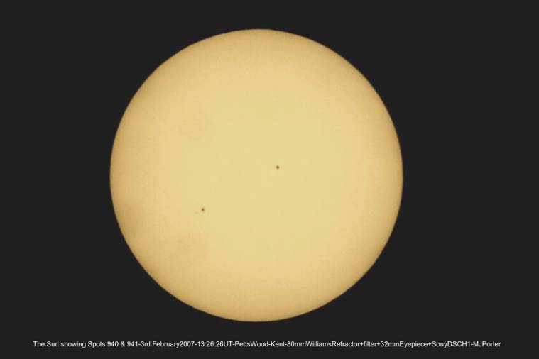 The Sun showing spots 940 and 941