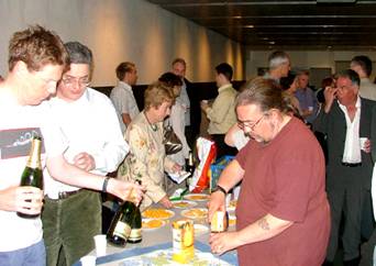 Over 120 Flamsteed members and their guests came along to the new ROG to ‘wet the baby’s head’ on July 12, 2007. We split into two groups to see in turn a new show built and delivered by ROG astronomer, Dr Claire Thomas, in the Peter Harrison Planetarium. It was great to see Claire put the new equipment through its paces. There was then time to browse the new Weller Astronomy Galleries and take a look at the Lloyd’s Register Educational Trust Learning Centre. The Endeavour Room was a firm favourite and everyone was impressed with the new facilities and galleries. After browsing the galleries and facilities the group gathered in the PHP Lobby and outside on the terrace to chat and drink a toast to the success of the excellent new ROG. |