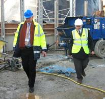 Isn’t it amazing who you meet in pubs? While drinking with the Astronomer Royal for Scotland (you heard!) our very own Julie Bevan cleverly persuaded Sir John Tiltman to conduct a party of Flamsteed members around the construction site where he is leading the refurbishment of the South Building and construction of the Peter Harrison Planetarium. John Tiltman was formerly Head of the Royal Household Property Section at Windsor Castle. Following the Windsor Castle fire, he was responsible for the day-to-day management of the rebuilding task for the entire five- year period Pictures by Pat Wainwright |